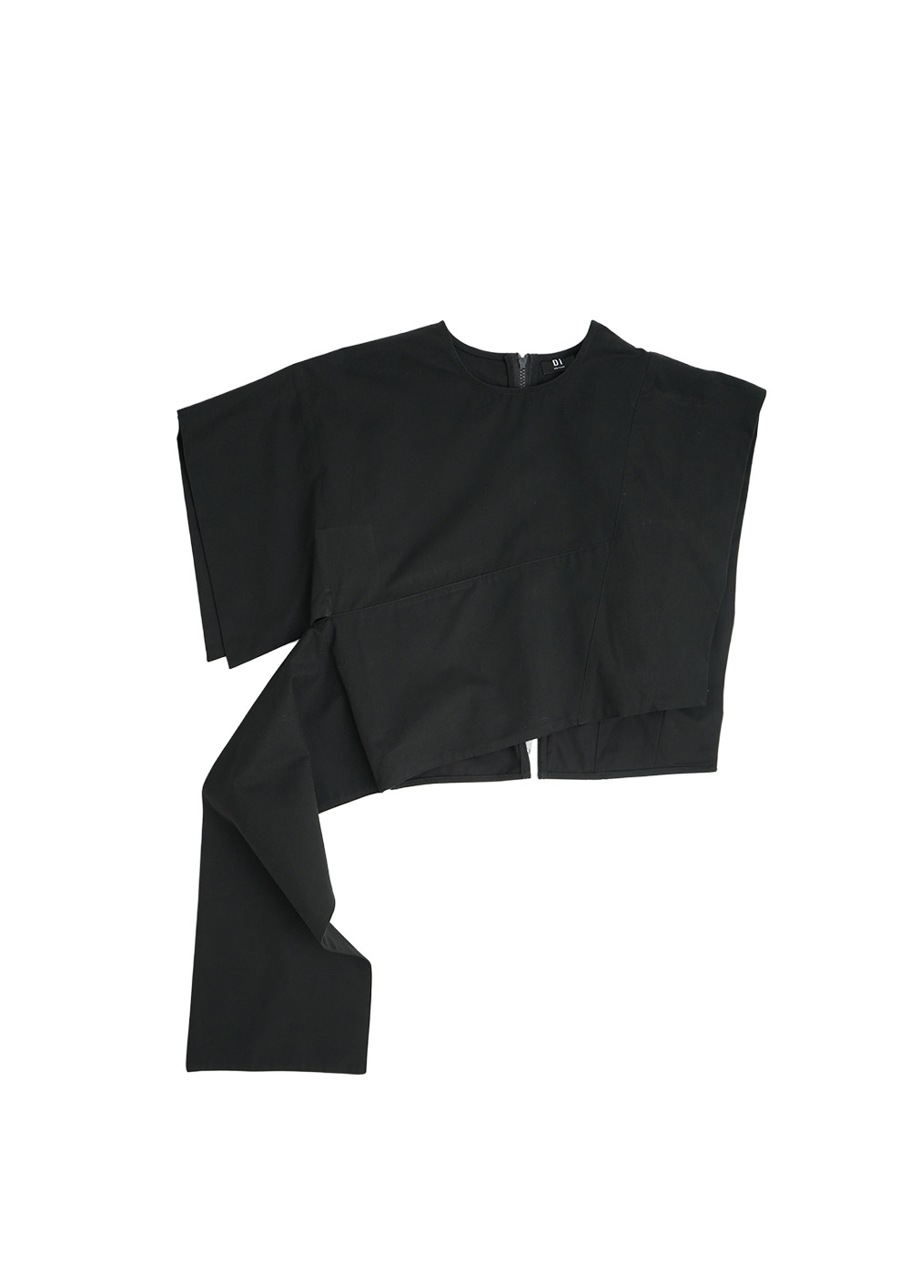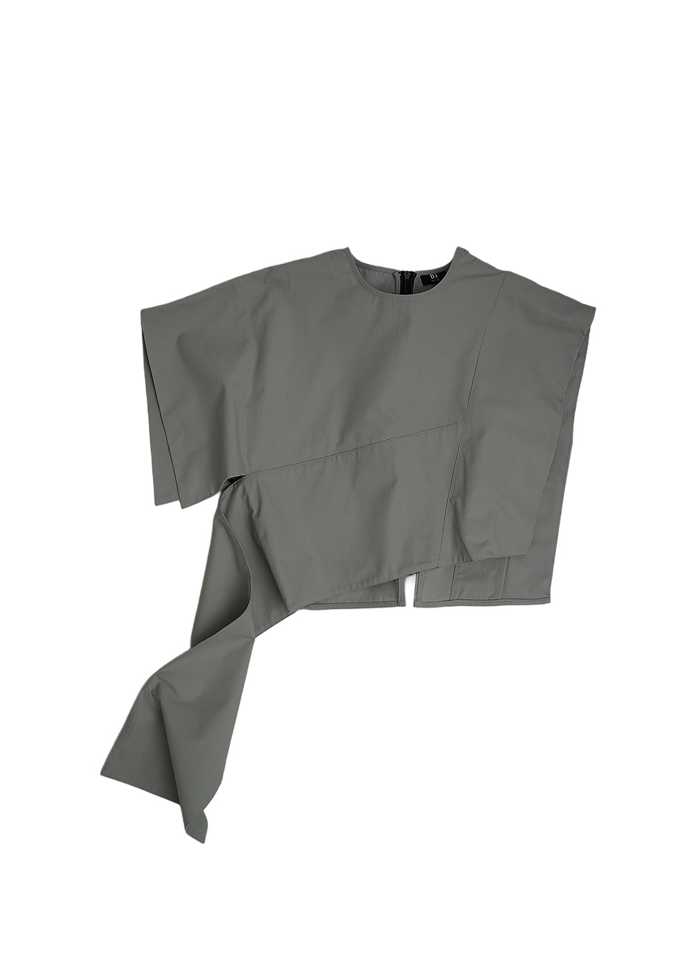 Di Asymmetric Draped Sleeve Top: Dark Grey S
