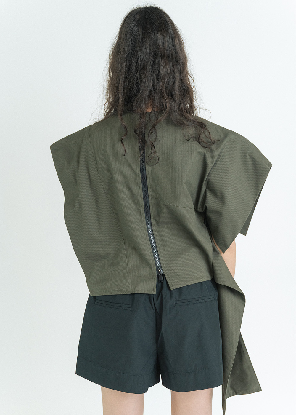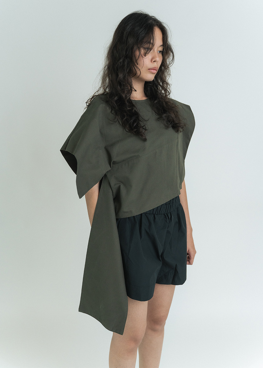 Di Asymmetric Draped Sleeve Top: Olive Green S