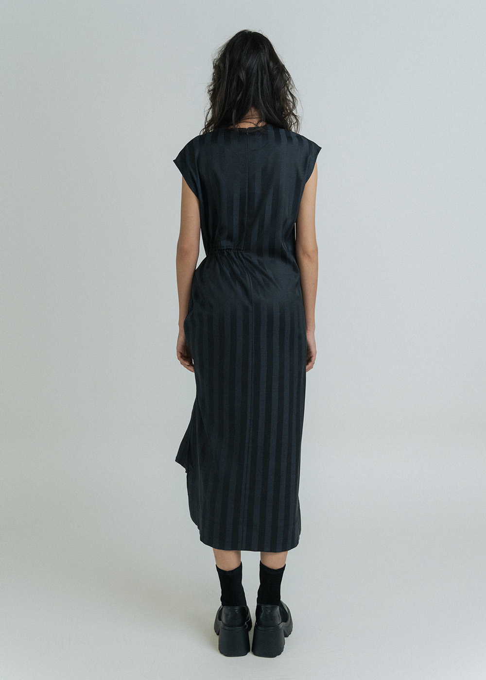 Di Draped Stripe Long Dress: Black S