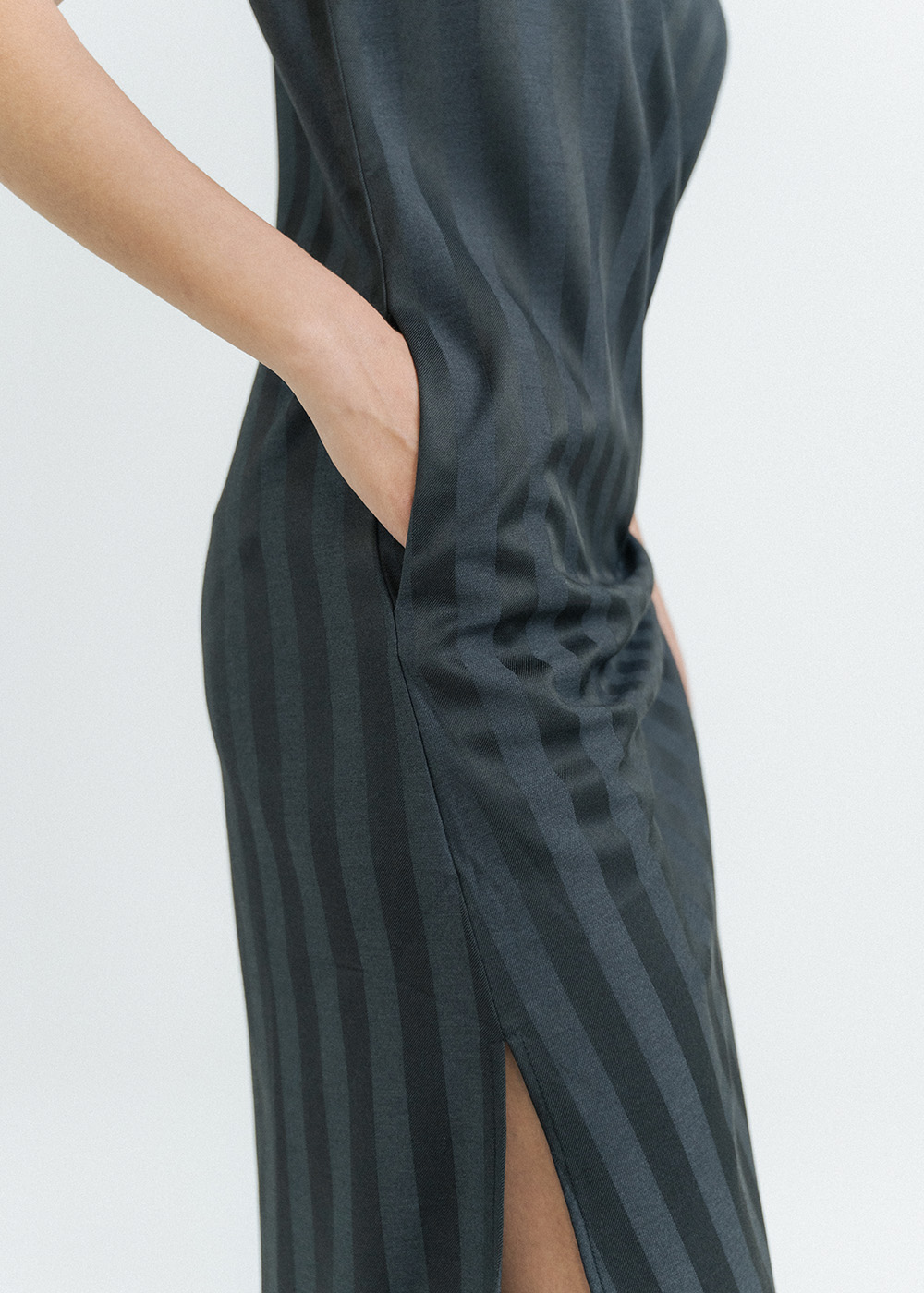 Sleeveless silhouette with a relaxed, fluid drape