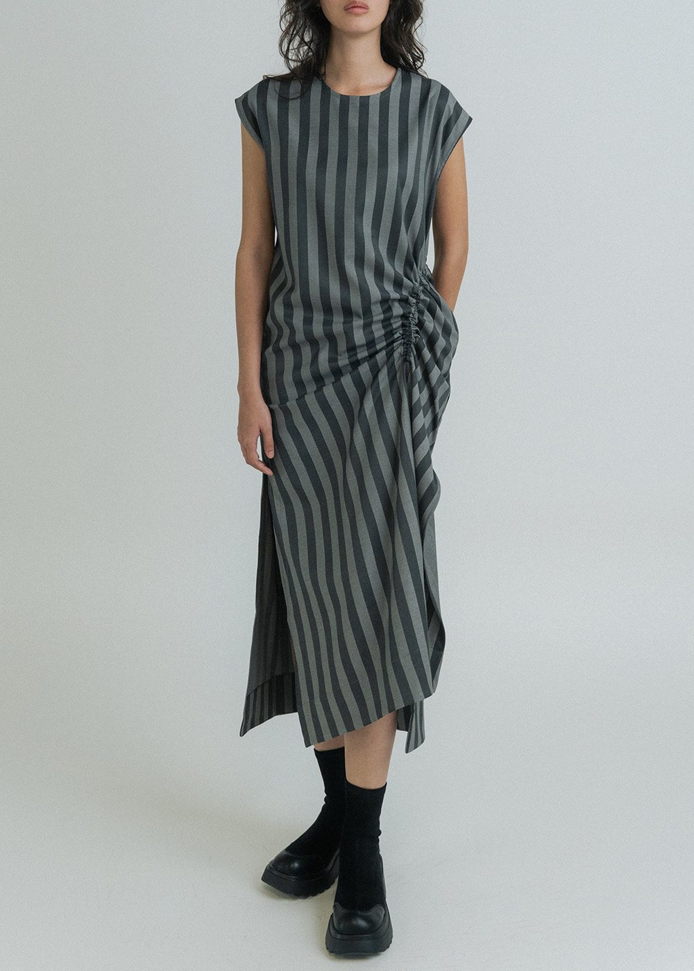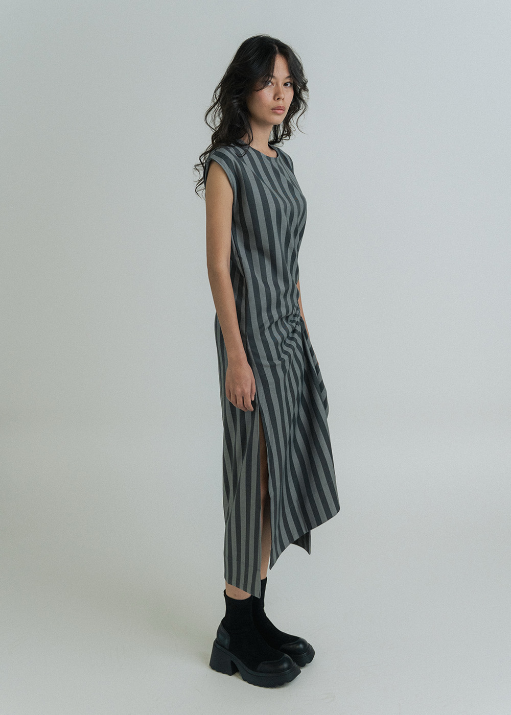 Di Draped Stripe Long Dress: Grey L