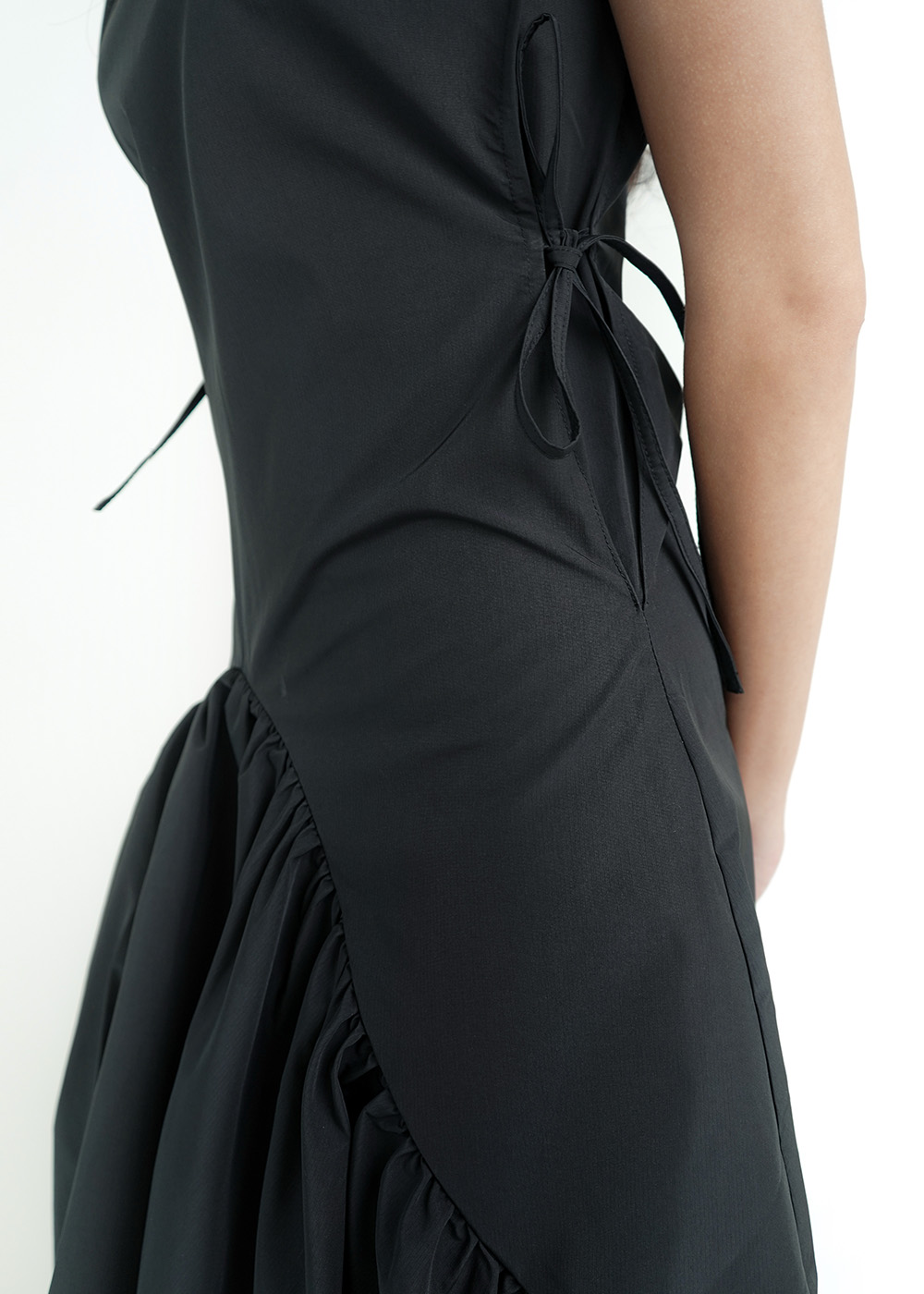 Side tie closure for subtle adjustability and fit